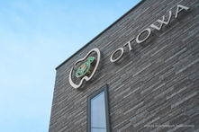 外観はシックなグレイッシュ・ウォールと基調とすることで「安心」を明示。そのうえで、バックライトを装備した純白のイメージ・ウォールを配置しています。昼夜いずれも歯科クリニックの清潔感あふれる「やさしい風景」を感じることができます。